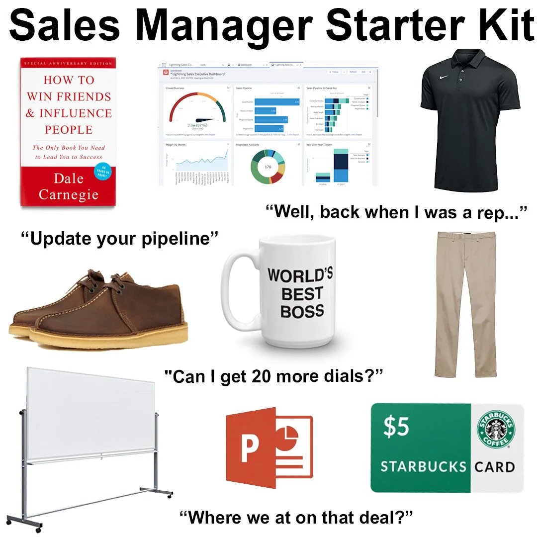 Managers. We all have em, but there's nothing quite like a manager of the sales variety. Despite being totally different from other managers, all sales managers are ultimately the same. Yes, we know things were different when you were a rep. No, you can't get 20 more dials. And fuck no, a $5 Starbucks giftcard isn't an incentive. Just stop @theycallmefister #Salesmanagement #CleanYourPipeline #MoreDials #whatsyourforecast
